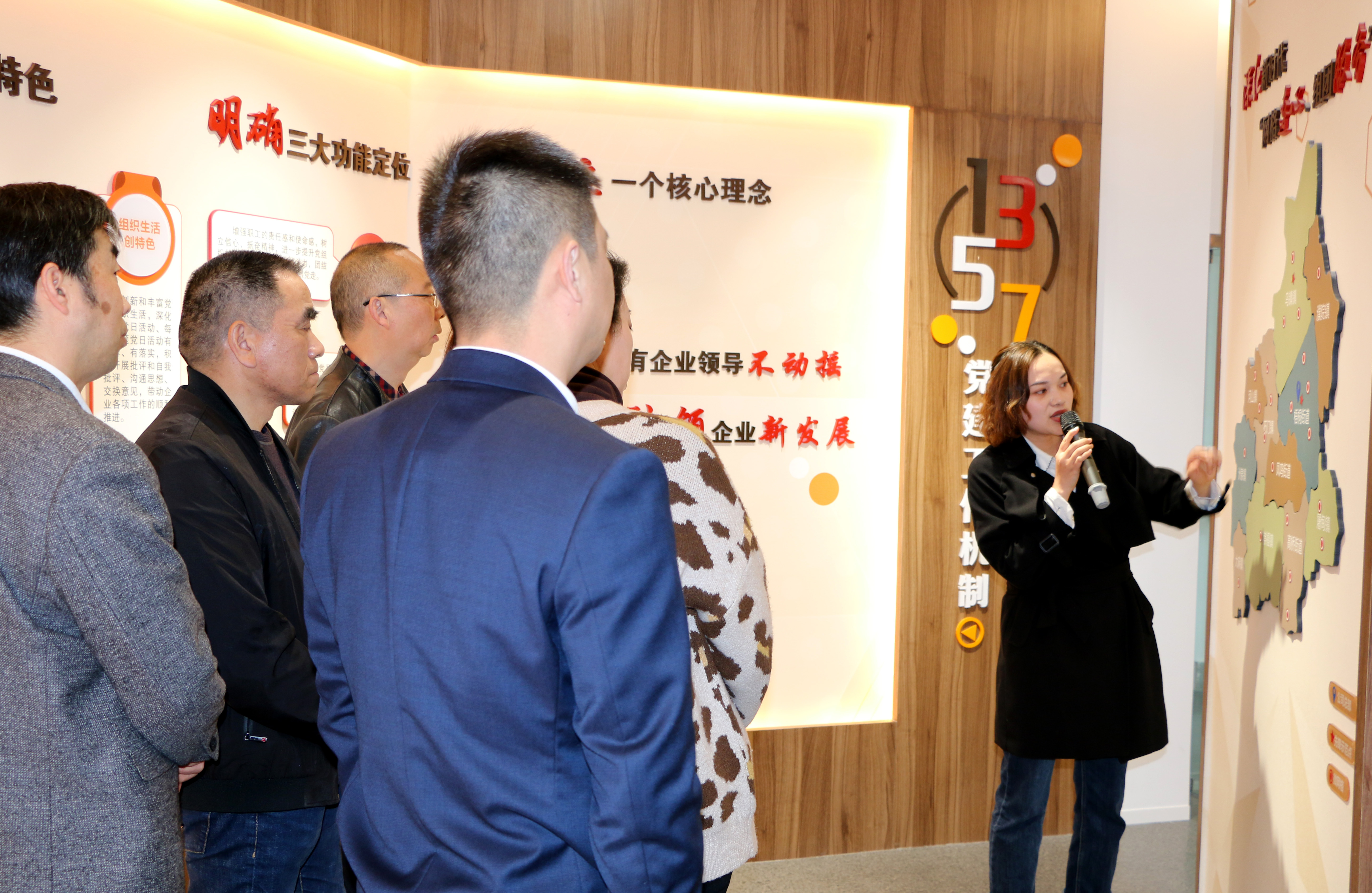 當(dāng)天,在桐鄉(xiāng)市安保服務(wù)有限公司黨支部書記商偉杰、黨建指導(dǎo)員沈霞等陪同下,公司考察團(tuán)一行參觀了安保公司的黨群服務(wù)中心。工作人員為大家一一講解了黨群服務(wù)中心的結(jié)構(gòu)設(shè)置及黨建文化,包括桐鄉(xiāng)安保發(fā)展歷程、企業(yè)文化、1357黨建工作機(jī)制、三治融合、清廉建設(shè)等諸多方面。追根溯源,工作人員將幾十年來(lái)公司克難攻堅(jiān)、勵(lì)精圖治的發(fā)展史及廣大黨員同志深根細(xì)作、無(wú)私奉獻(xiàn)的動(dòng)人事跡等娓娓道來(lái)。別具一格的陣地建設(shè),獨(dú)具特色的黨建文化,一代又一代人薪火相傳的動(dòng)人故事等,給公司考察團(tuán)一行留下了深刻的印象,大家紛紛表示收獲頗豐,催人奮進(jìn)。